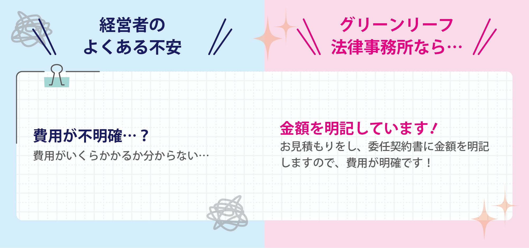 誠実に経営をされ、各種問題に真剣に悩んでいる経営者の方こそ、適切な法的サポートを受けるべきと考えています。