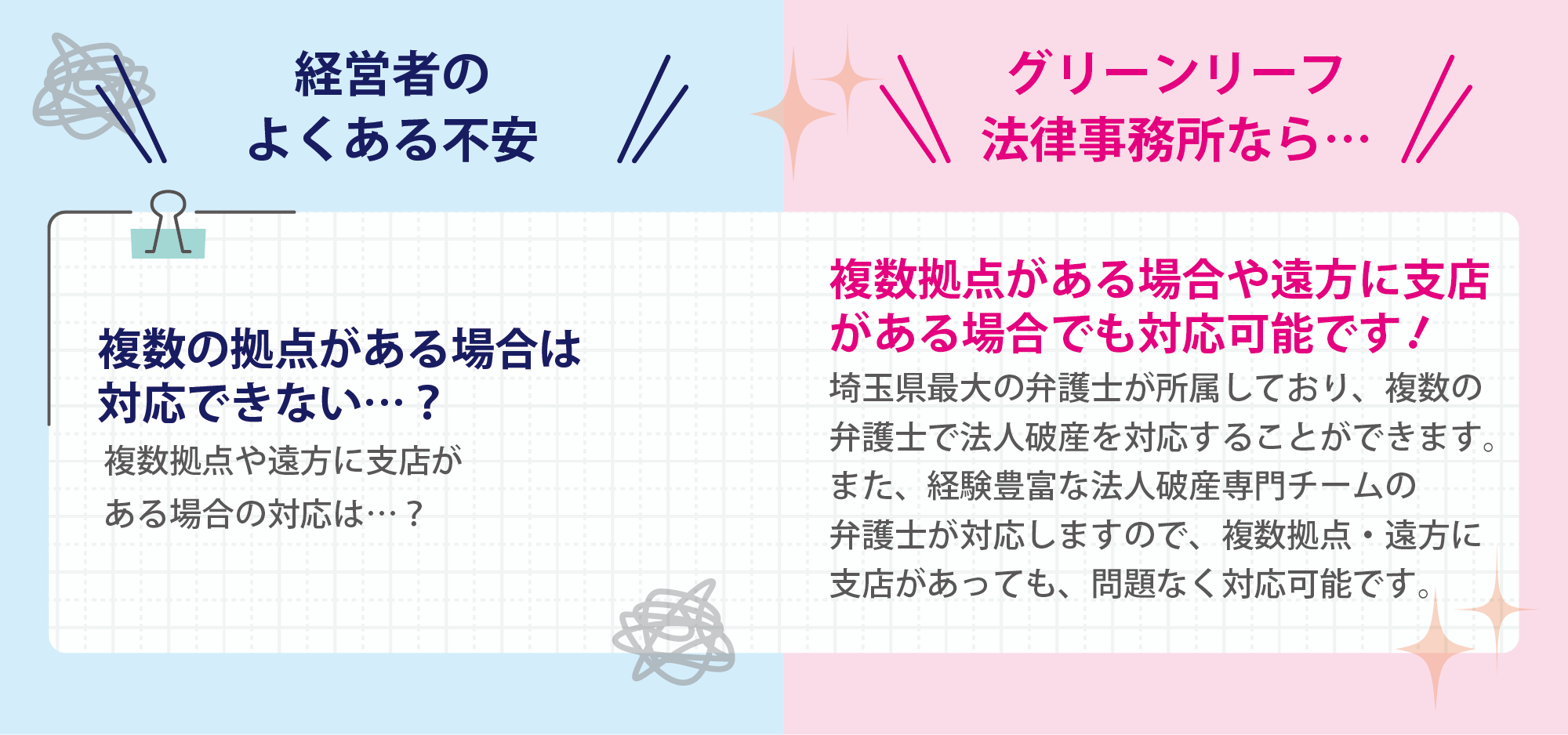 ・法人破産チームによる専門的な対応が可能です。